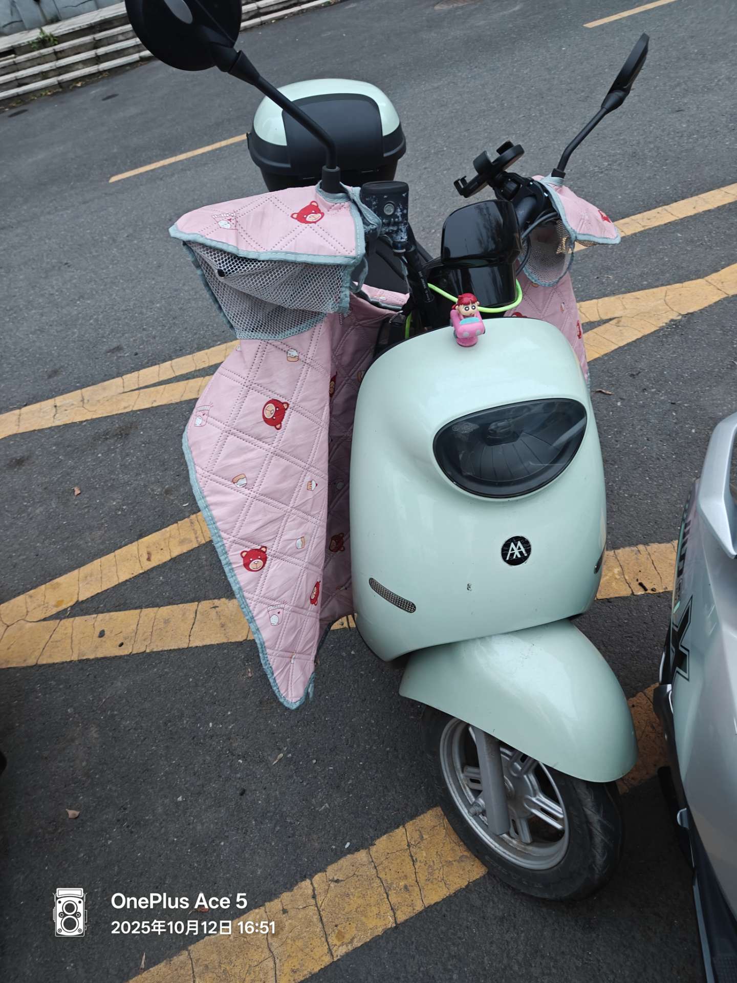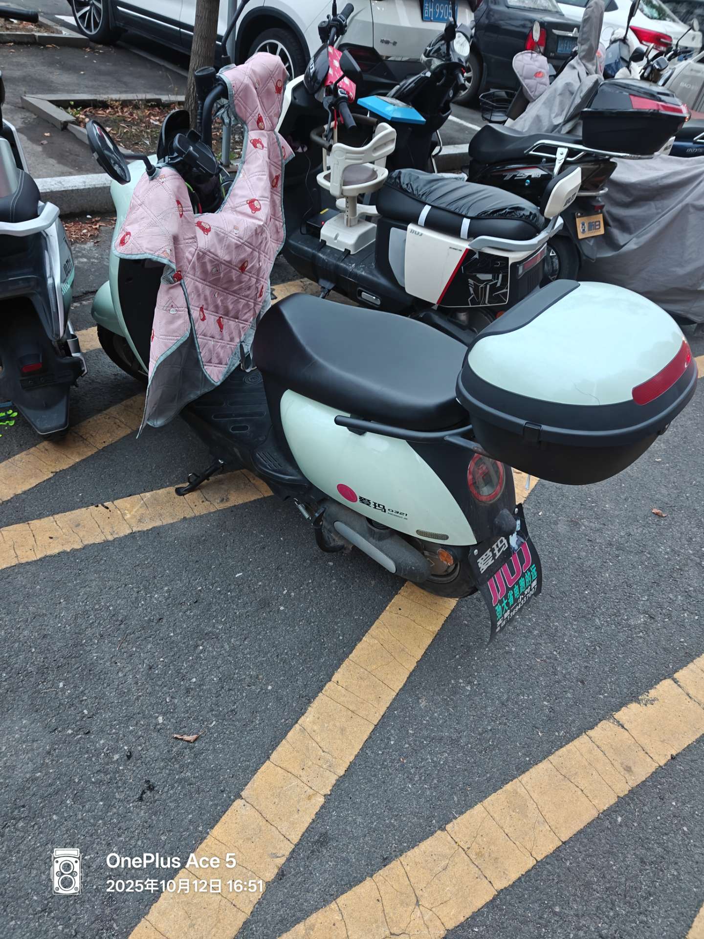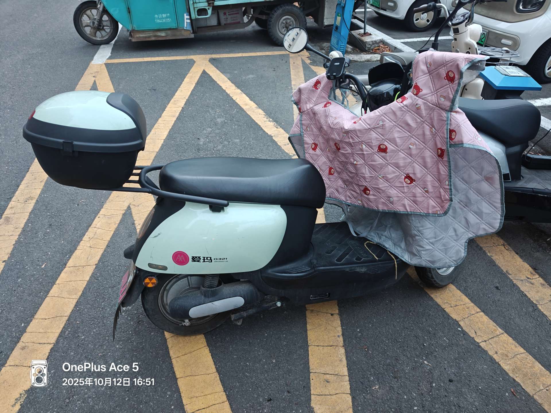 车辆是清新薄荷绿配色,颜值在线又显质感。爱玛 Q321,质量有保障,续航稳定,日常通勤、买菜代步都很方便。目前车况良好,电池给力,骑行顺畅。还配备了可爱的粉色挡风被,能为你抵御寒风;车尾的储物箱容量不小,放个头盔、包包完全没问题,实用性拉满。两年车温柔挪动 9 千公里