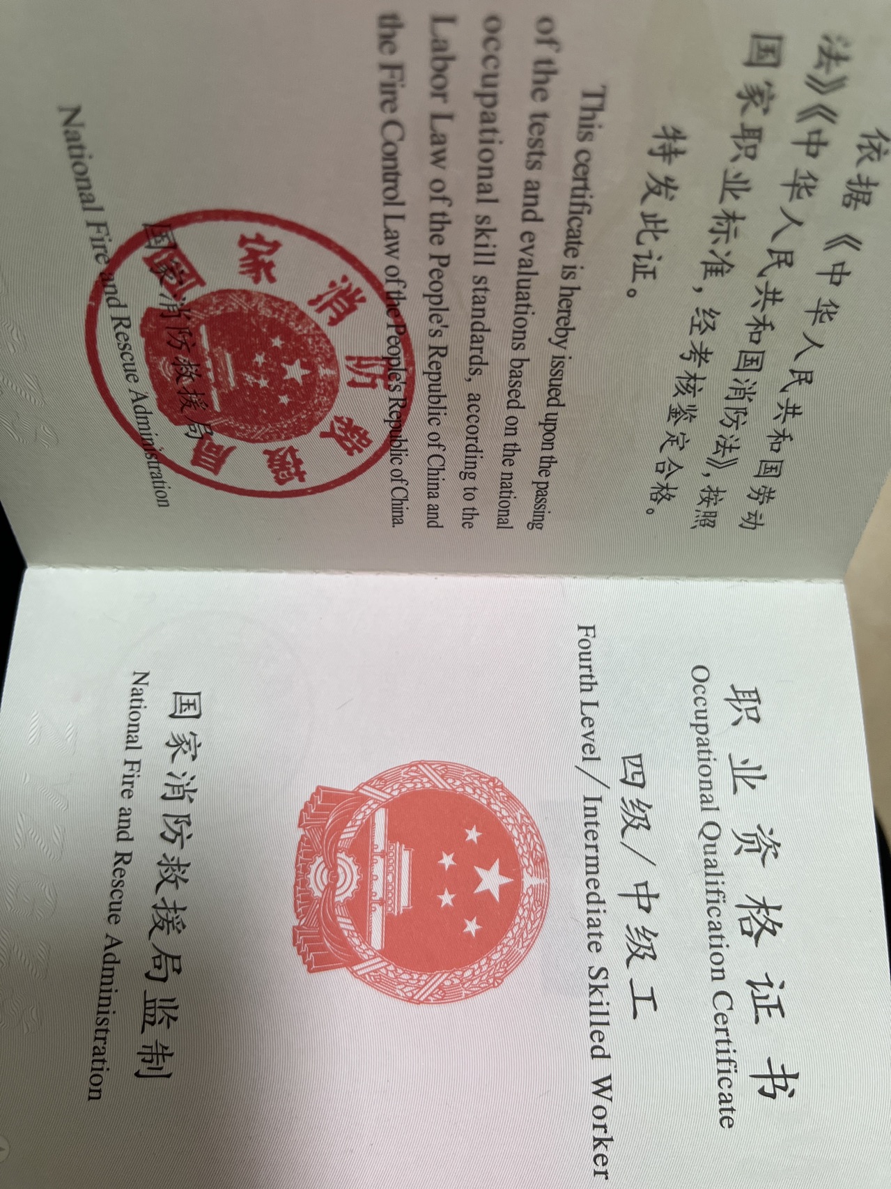 持有 消防设施操作员(中级)