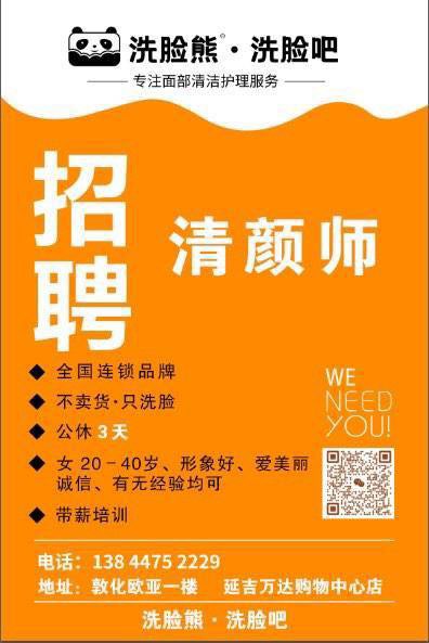 洗脸熊在敦化收获了超多老会员、老朋友们 会员越来越多,我们真的需要你啦!只要你喜欢美、向往美、心地美,想一起变美、一起赚米,就来加入我们~ 我们做的是全国连锁 高科技美肤,项目简单易上手,我手把手教 没有任何业绩压力,老板人好、事少、不啰嗦,你只需要用心服务、真诚对待每一位顾客就好。