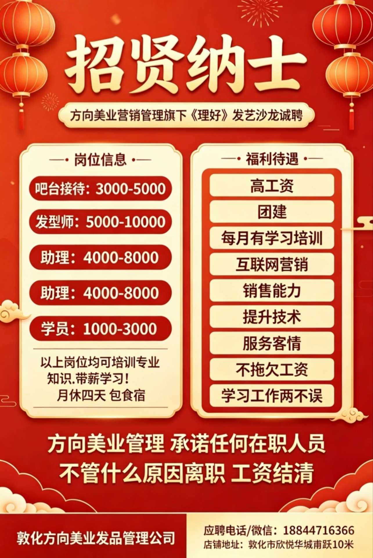 方向美业管理 任何在职人员 不管什么原因离职 工资结清 [握手]