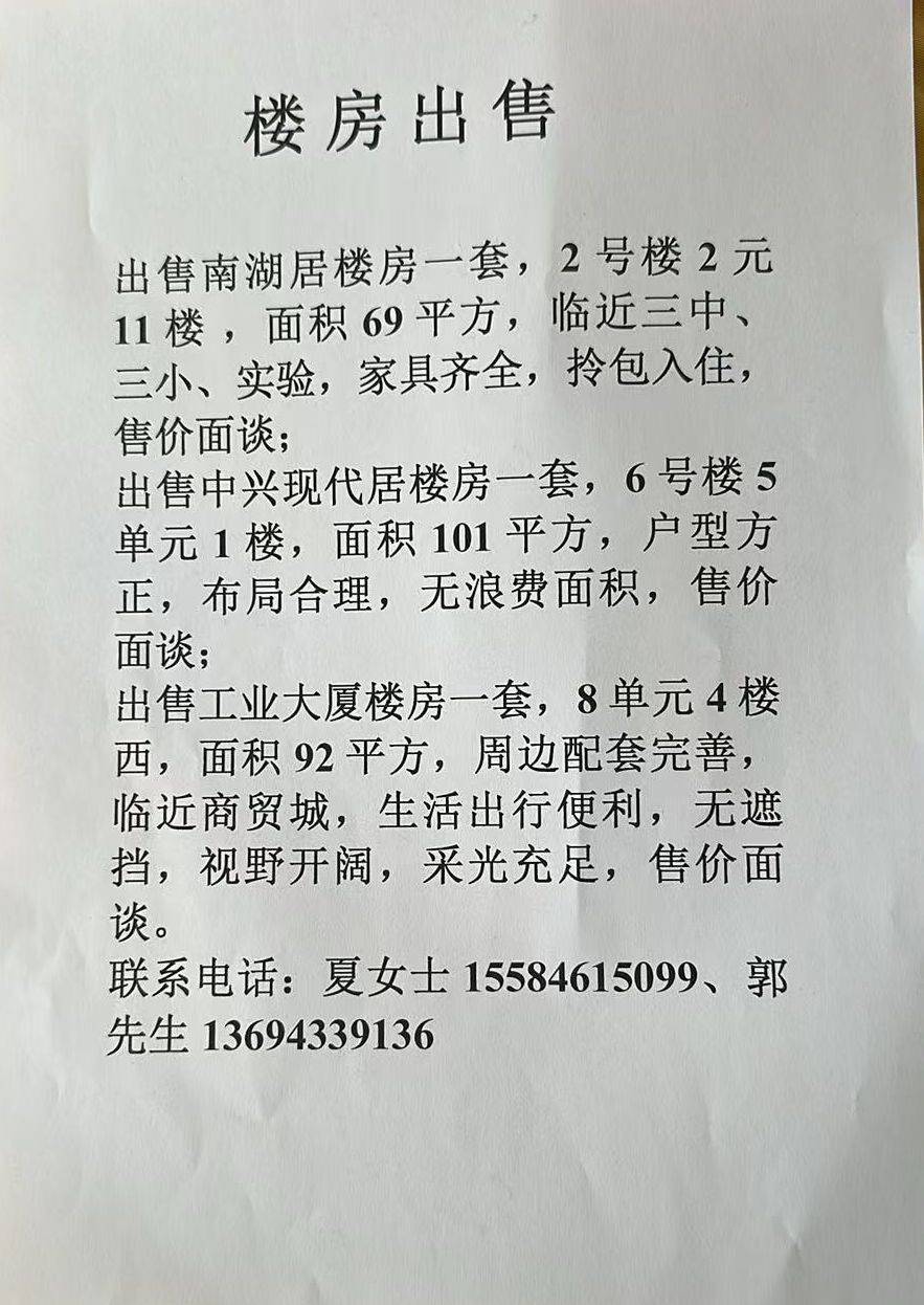 出售南湖居楼房一套,2号楼2元11楼,面积69平方,临近三中,三小,实验,家具齐全,拎包入住,售价面谈
