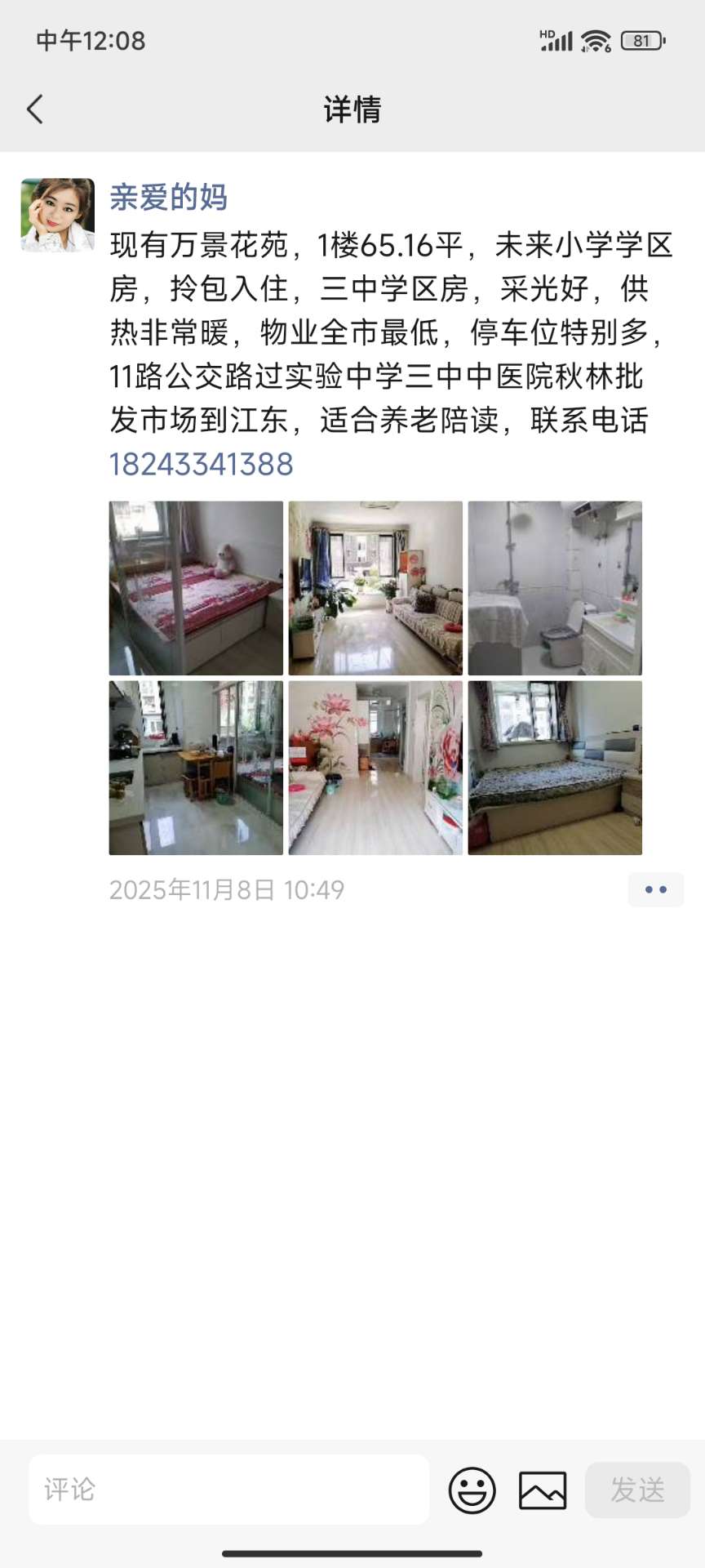 万锦花苑18号楼4单元101,一楼面积,65.16带有楼梯间院内七色花幼儿园,北靠大集,三中,学校,南边九小学,11路经过实验,三小三中,百货大楼中医院,批发市场欧亚江东,特别方便,车位特别多,物业费全市最低