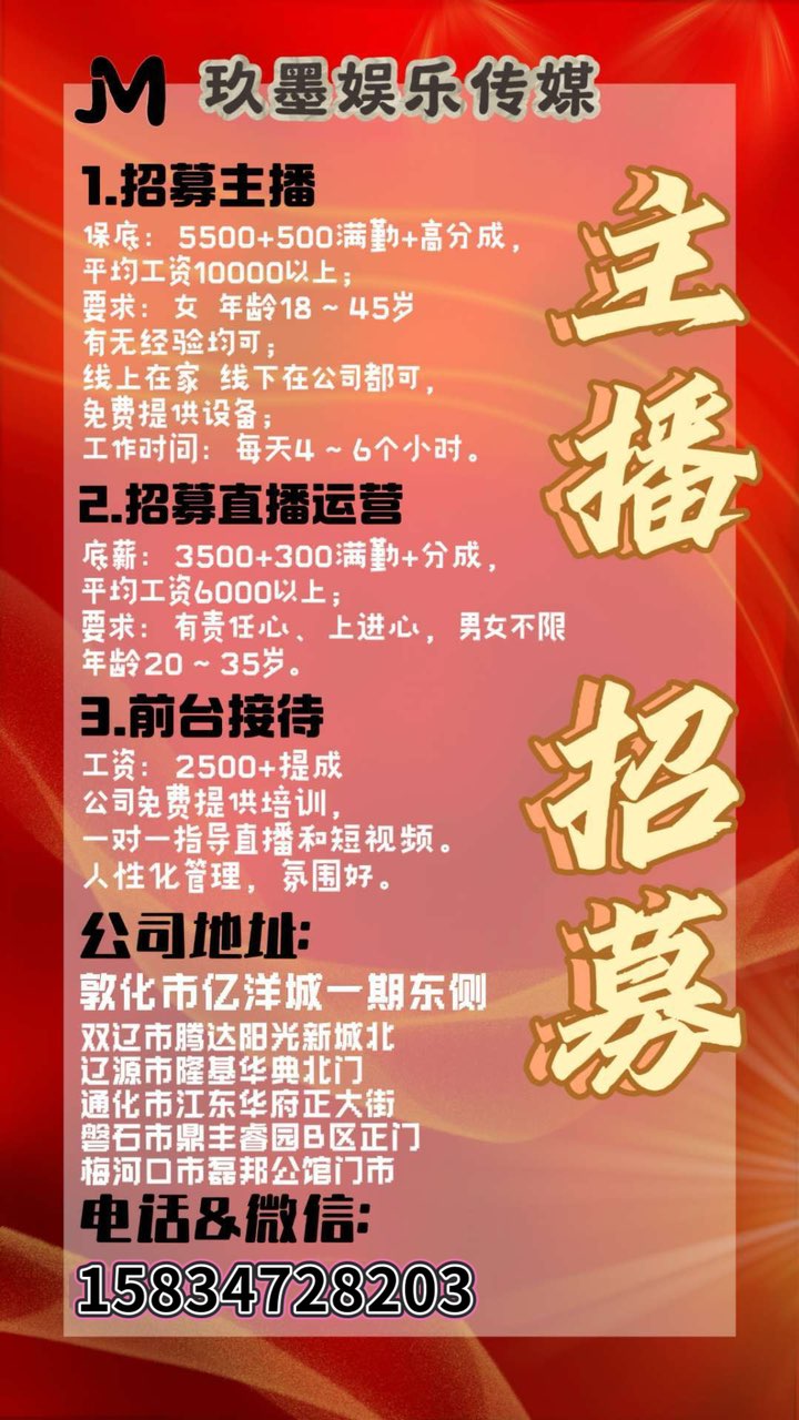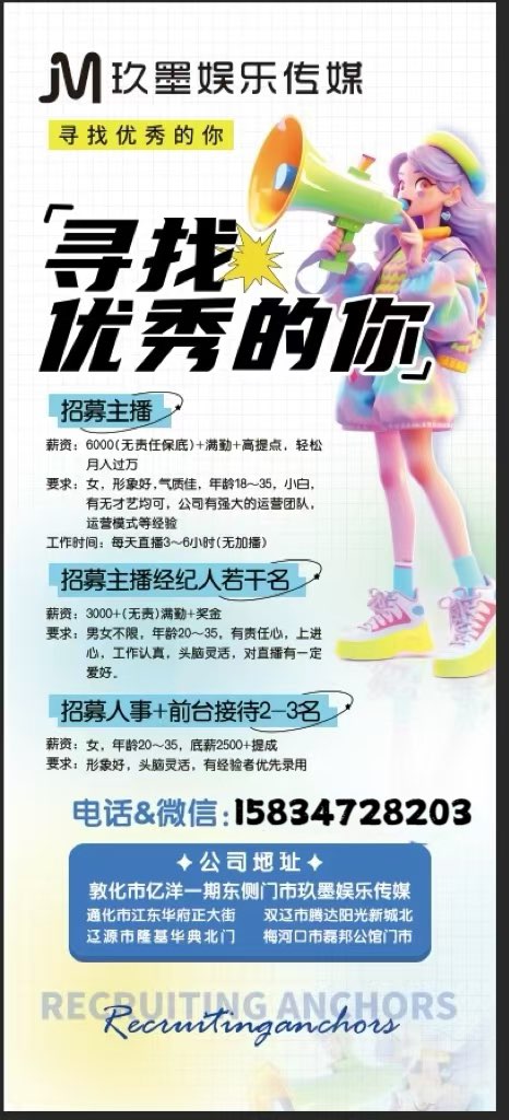 要求:女,形象好,气质佳,年龄18~35,小白,有无才艺均可,公司有专业的运营团队,成熟的运营模式等经验,每天直播3~6个小时(无加播)不签合同